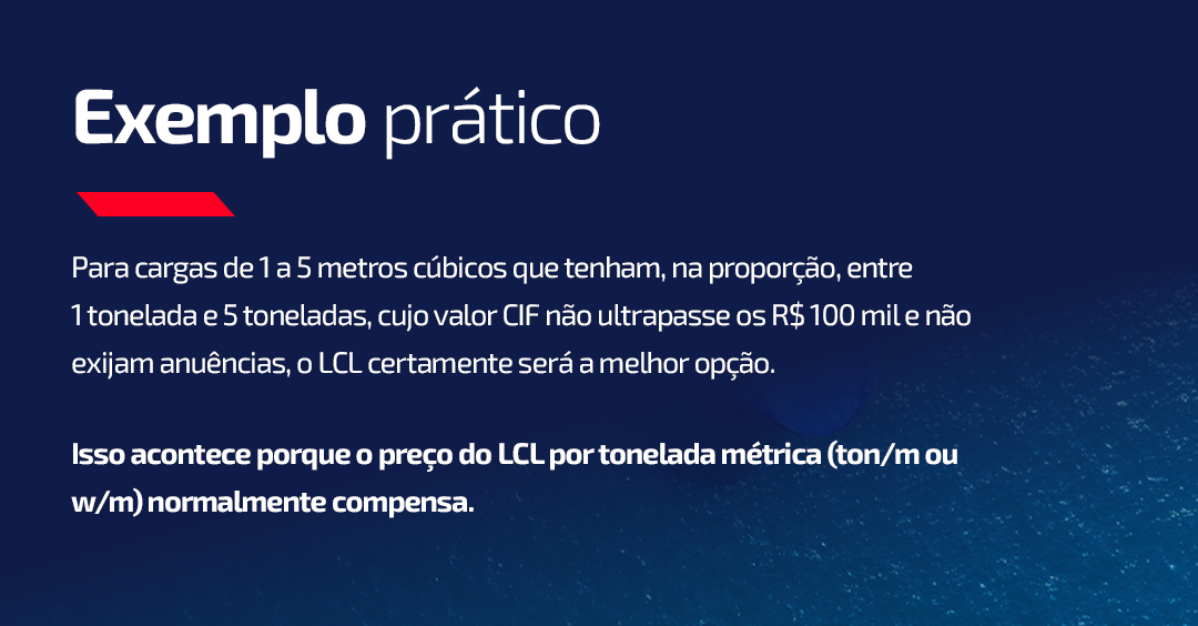 Além disso, o importador decide quando utilizar transporte marítimo LCL também baseado em outros dados, como: